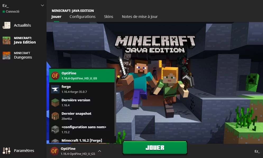 When the Optifine installation is complete, launch Minecraft then select the Optifine profile. If you are playing with Forge and you installed it as a mod, select the Forge profile where Optifine is installed.