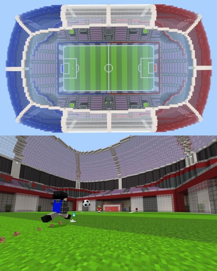 The very soccer field will look realistic. You can go to the map in Minecraft PE (Bedrock) with your friends, and together have a great time.