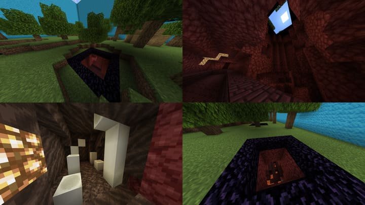 Special feature: a combined location from two dimensions: above is a green surface with the presence of trees, and below are the hellish caves from the Lower World.