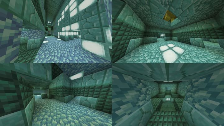 Special feature: the mood of this location is nautical, so there will be plenty of places to jump on sea lanterns, when levitating from which you can get to the center.