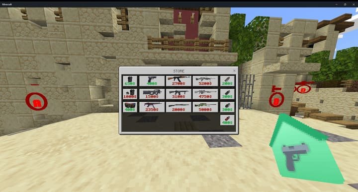 Between rounds, players have access to an advanced weapon store with a custom user interface. Here, you can spend the money you've earned in battle to purchase various weapons, from pistols to sniper rifles and grenades. Proper management of your finances and choosing the right weapon for the situation are the keys to victory in Minecraft PE (Bedrock).