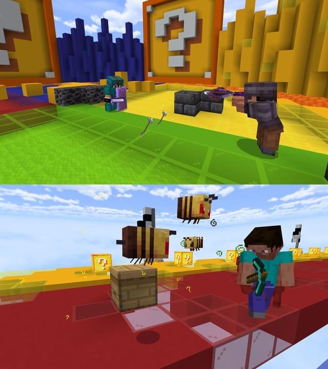 There is an observer mode, which makes the game in Minecraft PE (Bedrock) even more flexible and interesting. This is one of the best maps for fun competitions with friends or family PvP battles.