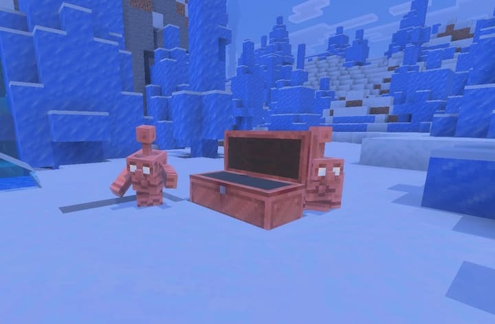 In this version of Minecraft PE we have been added a copper golem! He will be sorting items.