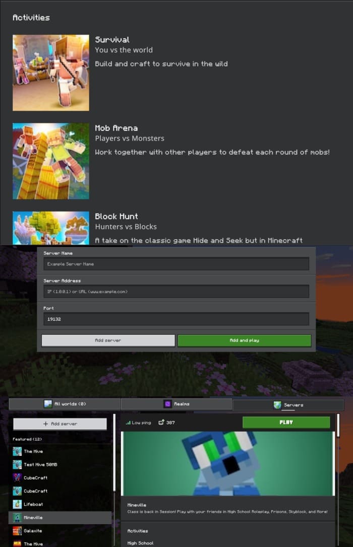 We have been changed the interface of the servers of Minecraft PE (Bedrock).
