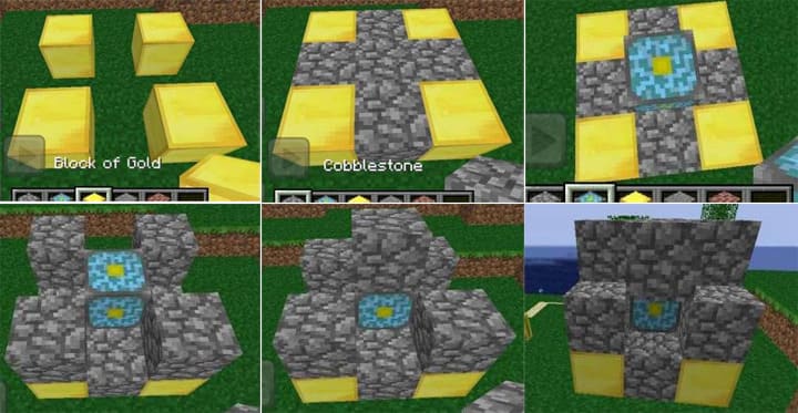 After creating the core, it must be activated by properly arranging the cobblestone blocks (or iron blocks, depending on the mod settings) around it to make a kind of pyramid, as in the picture below.
