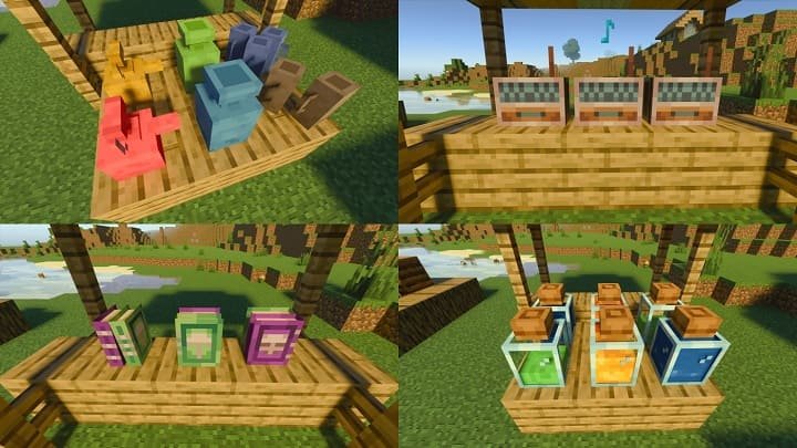 Decorate a room with attractive decorative blocks by playing with this modification in Minecraft PE (Bedrock). You can install lamps, clocks, radios, clay ornaments, vases with glass in which you can pour liquids, a mini bed for your pet, decorative books and much more to accentuate your interior.