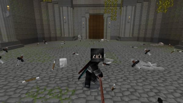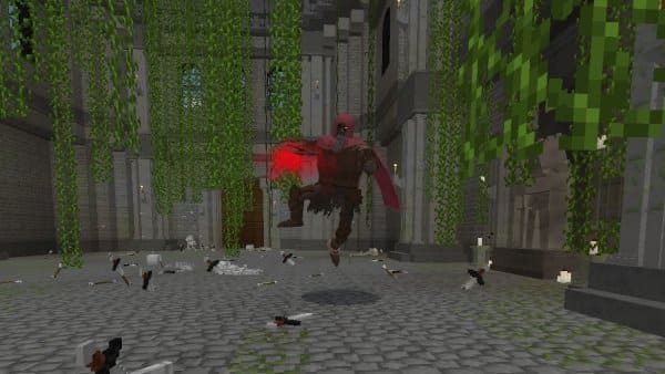 He will have a lot of cool animations and effects to attack you in Minecraft PE (Bedrock). Also, the knight will be afraid of light and die from it.