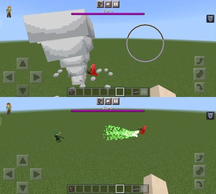 This mod adds a unique character to Minecraft PE (Bedrock) - Roronoa Zoro. In his arsenal will be real sword-catanas, which will help him to cope with any challenges. Head into battles and prove your skill with a sword!
