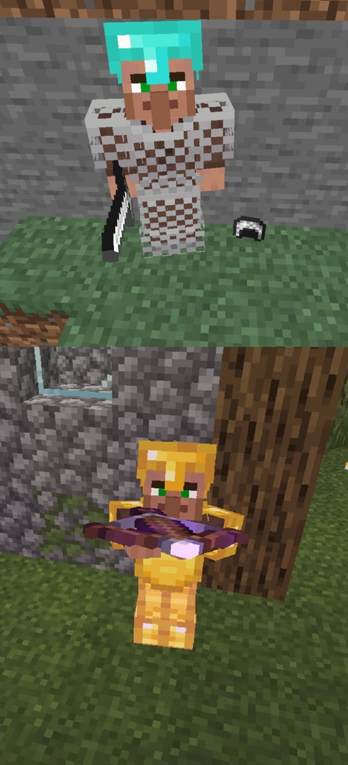 Mod Village Guards will make it so that village in Minecraft PE (Bedrock) will be protected not only golem, but also other residents with weapons: swords, crossbows. They will walk around the village and patrol it.