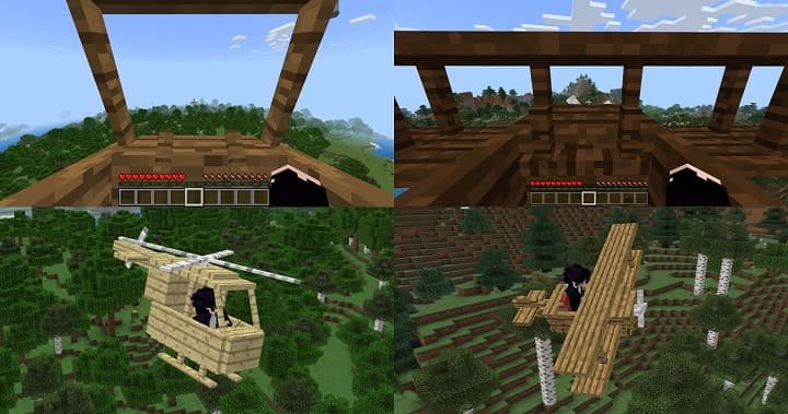 Speed up your movement around the world of Minecraft PE (Bedrock) with wooden air transportation by creating a personal helicopter or airplane.