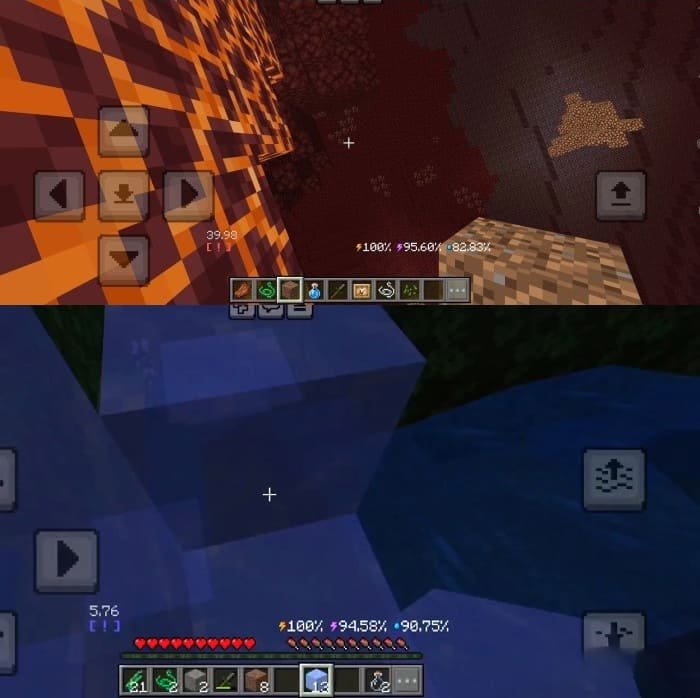 When you stay in the Lower World, you get hot temperatures dangerous to survival faster, if in the Ender World, the opposite is freezing.