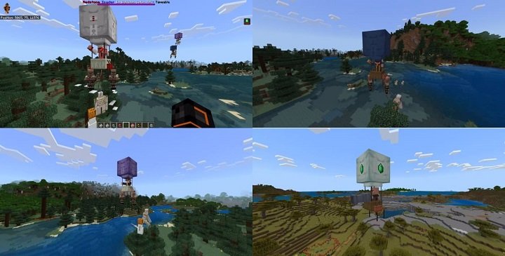 NarratorThe Storyteller is a merchant who will fly around the world and tell funny stories. You can trade with him and if you defeat him in battle, he will give you many books with stories.Wandering TraderThis is a regular vanilla traveling merchant who will fly around in a hot air balloon. He will spawn with the golem and other villagers. It needs to be guided so that it does not fly away during trading, but this can also be done right in the air.Red Stone MerchantA merchant who sells red stone and red stone blocks.Balloon BanditsAir battles for Minecraft PE (Bedrock) also add bandits flying in the sky who can shoot fireballs, ice and other types of weapons. You can get various loot from them. You can also try to tame them, but the probability is much lower than for residents. If you wear gold or diamond armor, the bandits may not detect the player.