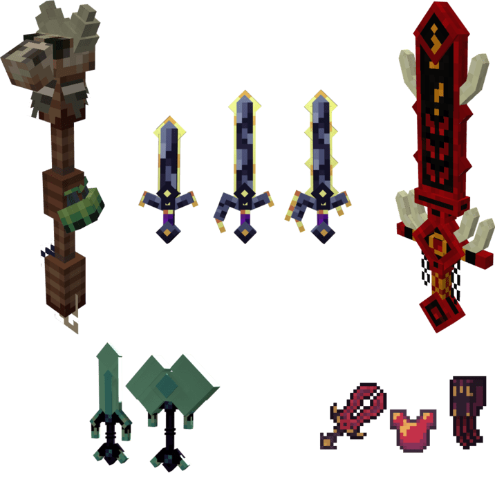 ■ Crimson Blade, Blades, and Vest (makes mobs levitate, blades drop them, and vest heals them)