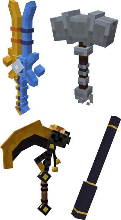 Mod Beyonds 3D Weapons for Minecraft PE (Bedrock) will be a great addition to the game fans of 3D weapons, as each of the weapons from this mod has its own effects, abilities and recipes for crafting.