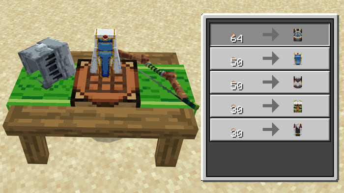To start, you need to open a special table and buy in it the necessary equipment in Minecraft PE (Bedrock).