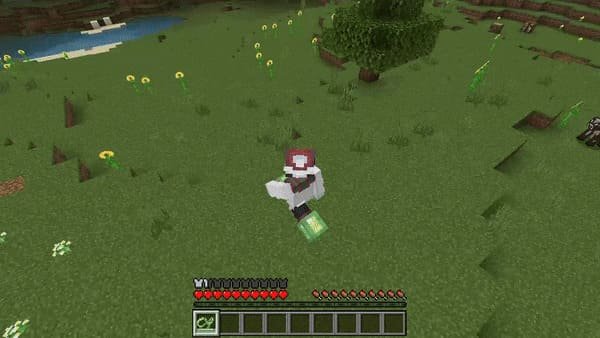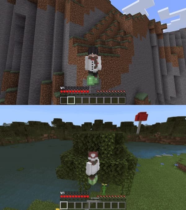 Thanks to the Slime Slingshot from this Minecraft PE (Bedrock) mod, you can conveniently fly from the opposite place you used it on the ground. Just shoot it at the place you're looking at and fly backwards!