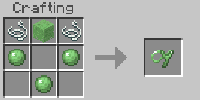 Use the following crafting recipe in your world to craft a slingshot from a slime: