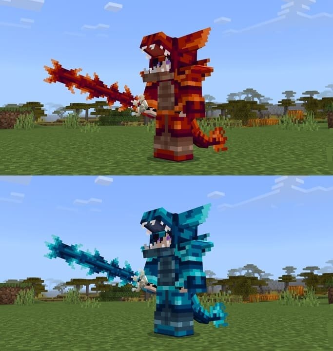 You can create this armor and sword in your world after cooking and killing several fire or ice dragons from their scales and blood: