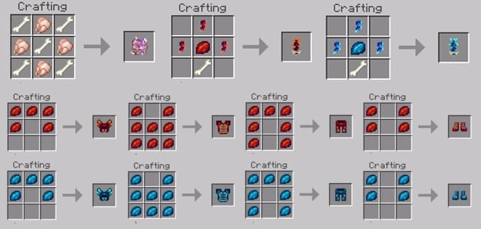 The pictures below show all the recipes for creating the items introduced into the game by this mod: dragon meat, dragon armor and dragon swords: