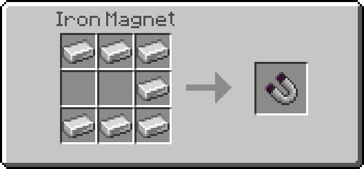 In this section we will show how magnets from the mod for Minecraft PE (Bedrock) will actually attract objects. And also consider the recipes for creating each of the types of magnets, and talk about the range of their effect on the loot.