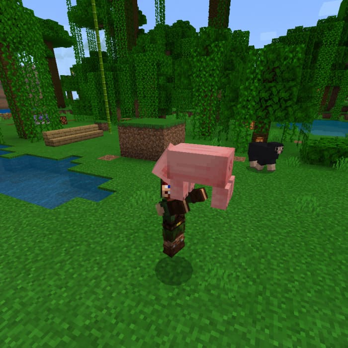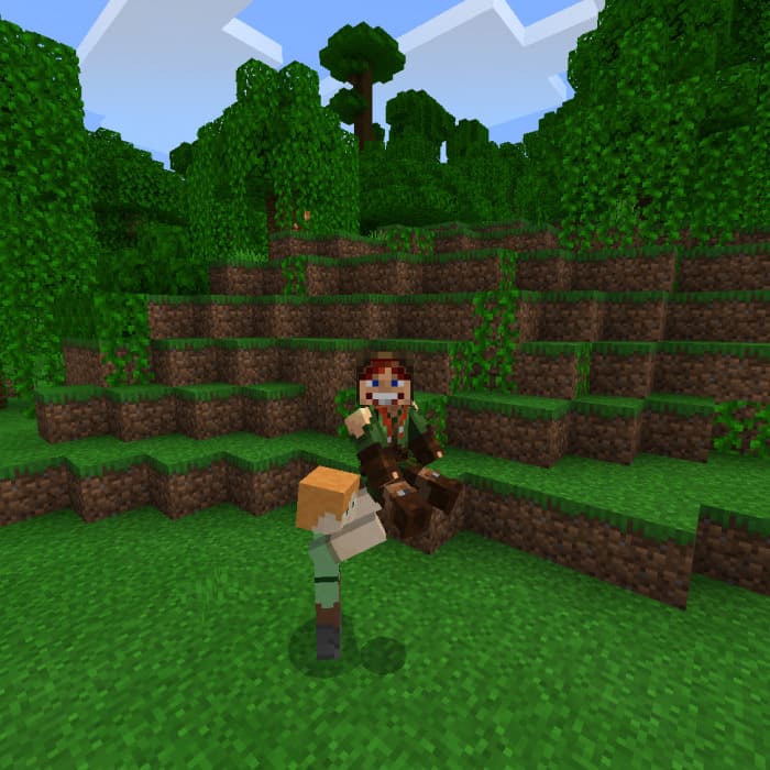 In order to pick up a mob in Minecraft, you need to get close to the mob or player, then you need to crouch down and jump up.