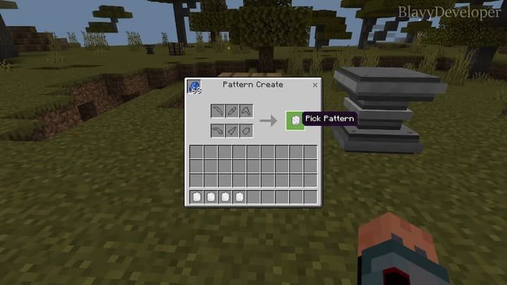 A special anvil from the mod will allow you to assemble a solid tool from the template and plate, just place them in the right cells and put the hammer in the middle: