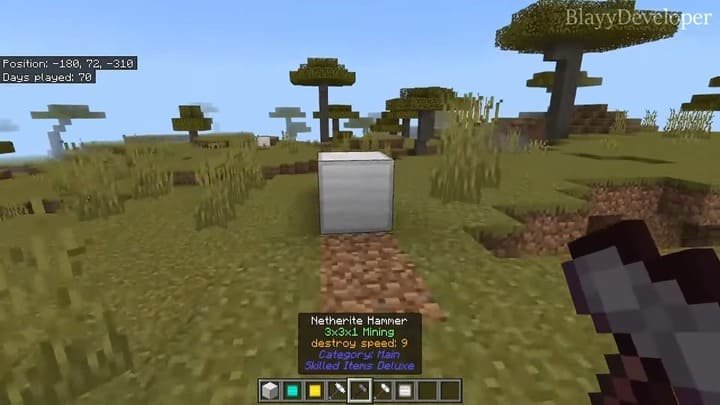 Skilled Items Deluxe is a modification for Minecraft PE (Bedrock) that will diversify the weapon mechanics in the game. You will be able to create several classes of tools, going step-by-step through each step of the crafting, as well as use the altar to create rare minerals to get more powerful equipment with skills.