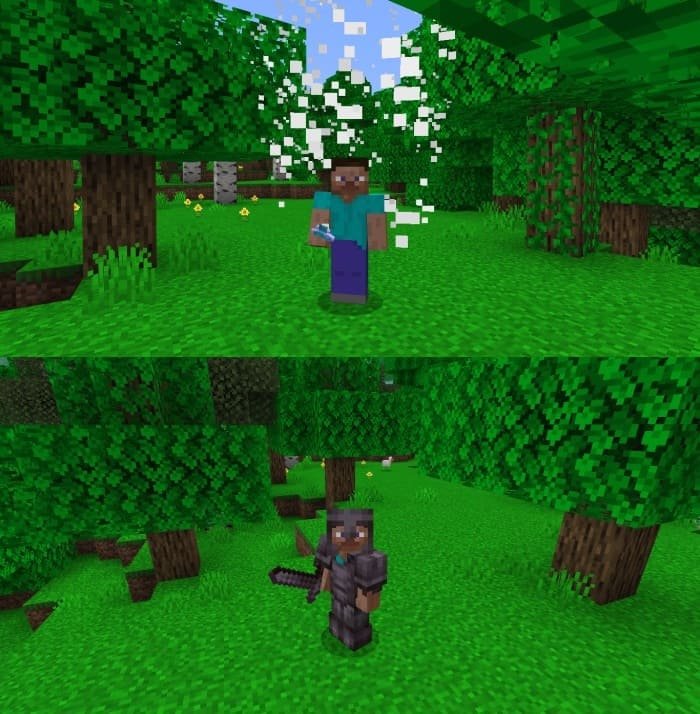 This is how you will look in your world: you will have a more scaled-down look to your armor and item textures applied:
