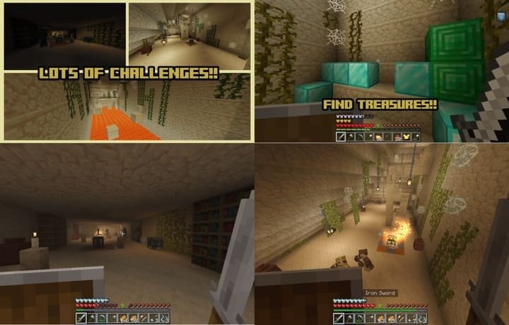 The new temple will feature a variety of traps including hidden mechanisms, lava parkour and deadly pistons. You'll also find more rare resources than in standard Minecraft PE (Bedrock) temples, including enchanted apples and valuable minerals. Loot is balanced so that it's not too powerful, but remains useful for survival.
