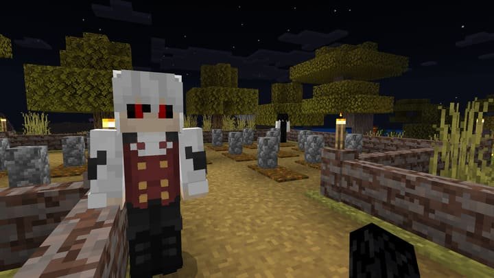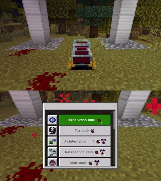 This is one of the unique modifications on Minecraft PE (Bedrock) that adds large-scale vampire and werewolf mechanics.
