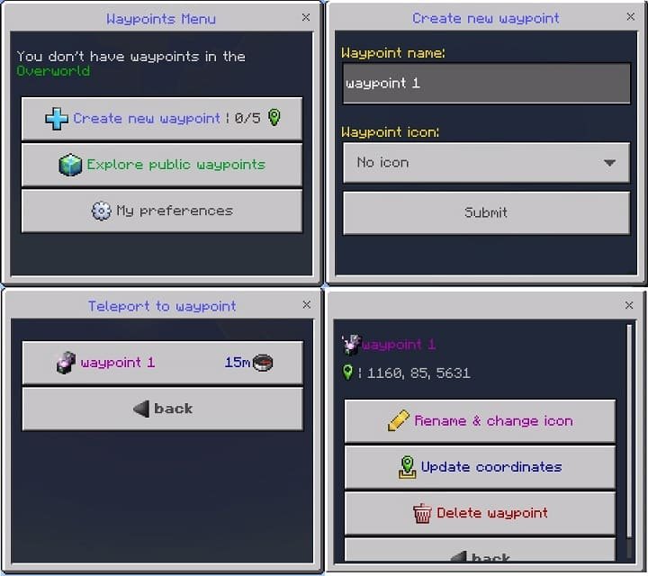 Features of the mod Waypoints teleportation points