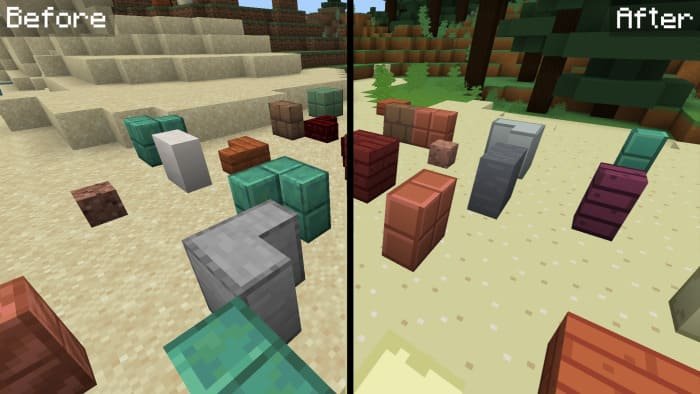 All blocks can be created through a workbench or stonecutter, making the building process much easier. The ability to combine blocks directly in gameplay speeds up the creation of complex structures and saves time.