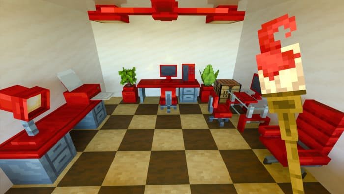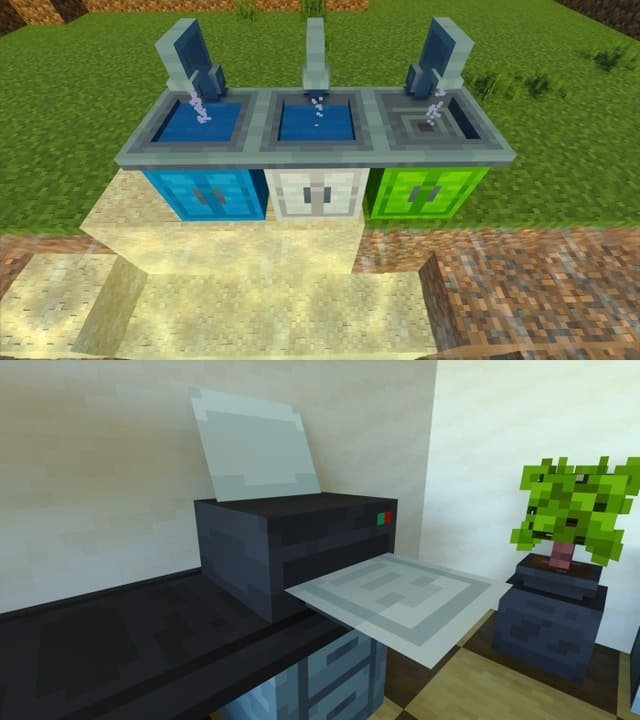 The mod not only provides ample opportunities for interior design, but also makes it functional. For example, sinks can store up to two buckets of water, and the printer allows you to rename items in Minecraft PE (Bedrock).