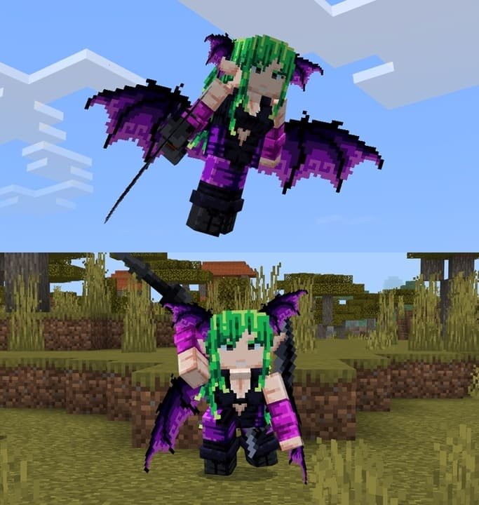 Succubi appear at night throughout the world of Minecraft PE (Bedrock) and have special combat skills, such as scythe swings that deal area damage and special attacks that deal significant damage.