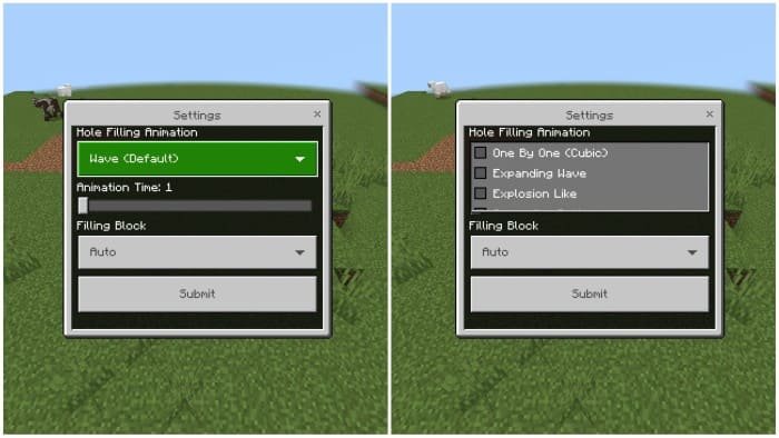 This item will become useful in dealing with the aftermath of exploding Creepers or TNTs, reducing the time it takes to restore the landscape. The tool is easily accessible via a command in chat and offers different filling animations so that users can choose the most suitable style.