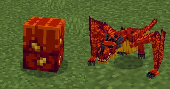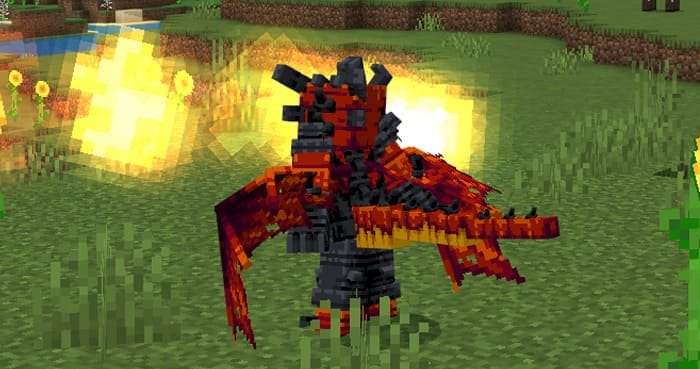 The dragon has 1000 health, flies, attacks the player with a powerful bite, tail blows and fire breath. Fighting him requires good preparation, as iron armor will not be enough. After defeating the dragon, you can get his egg. It hatches in 3 minutes after placement.
