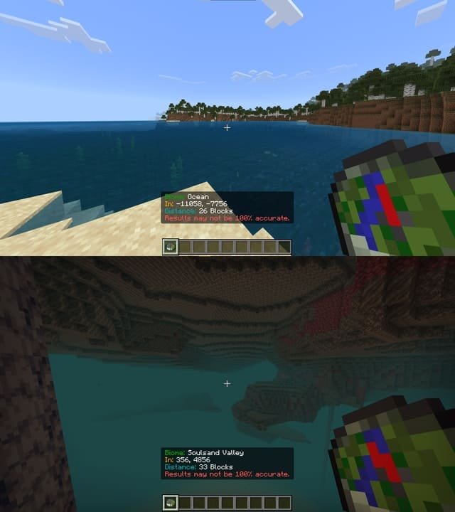 Use Biome Compass to explore the world of Minecraft PE (Bedrock) and find new interesting biomes without spending hours wandering randomly. Make sure that the experimental settings are activated for the mod to work correctly.