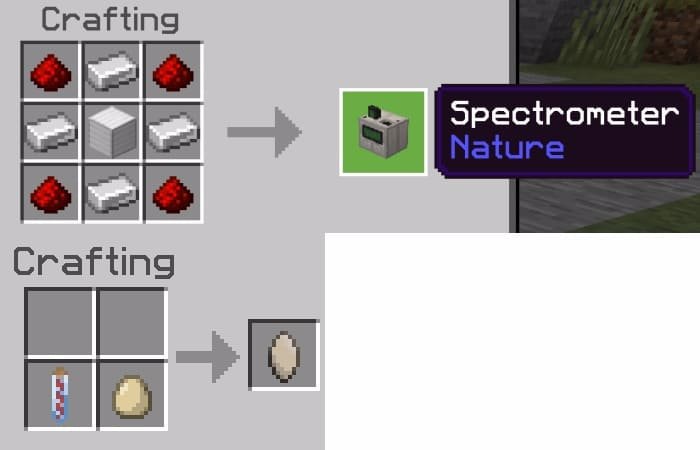 To create dinosaurs you will need not only DNA, but also special resources to create eggs and spectrometer in Minecraft PE (Bedrock). The spectrometer is a key tool for isolating DNA from bones.