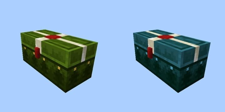Christmas Chests Remastered textures for Minecraft PE (Bedrock) will bring the holiday atmosphere to your game. All chests, including regular, double, trap and ender chests, get festive textures reminiscent of gifts.