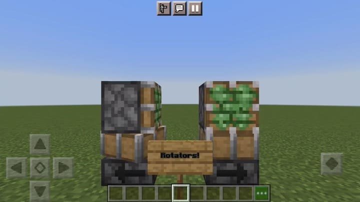 Rotation limit: no more than 24 blocks at a time. If a block collides with a stationary element, it is destroyed, which allows you to create unique Minecraft PE (Bedrock) farms.