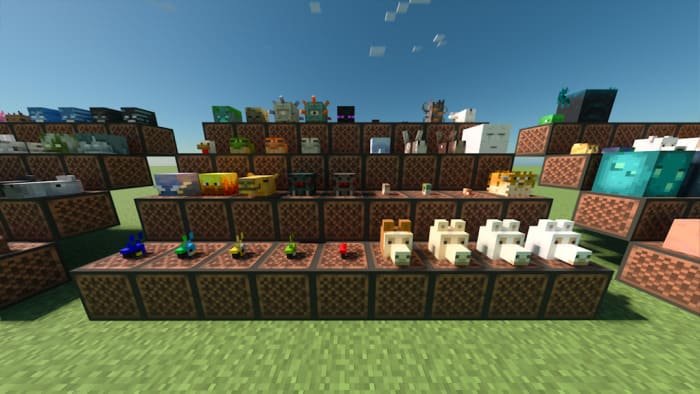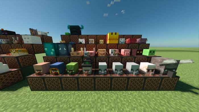 Not only will the heads decorate your world, but they also produce unique sounds when interacting with the note blocks. These sounds match the original sound of the mob, creating additional depth and atmospherics.