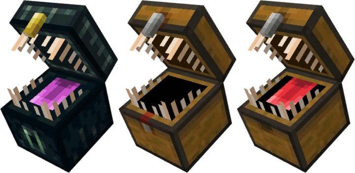 This mod also adds the unique mechanics of chest mimics that spawn in caves that have a chance to drop a trinket from this mod.