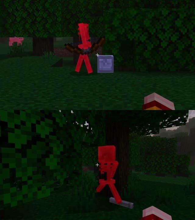 For example, zombies without arms do less damage in Minecraft PE (Bedrock), and skeletons turn into melee fighters.