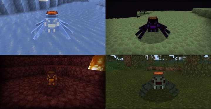 ■ Each spider inhabits a different biome: End, snowy plains, swamps, hell forests, and others.