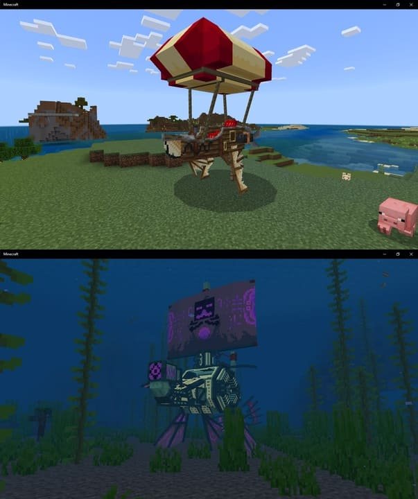 FlyerWorks modification for Minecraft PE (Bedrock) offers six different aircraft models, each of which corresponds to a certain stage of the game - from initial to final. Easy integration into vanilla mechanics makes this mod incredibly handy.