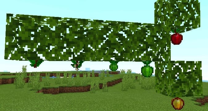 Mod Apples Plus+ will give you the opportunity to grow apples on trees in Minecraft PE (Bedrock). And it will add realism to our game. Apples will have several stages of growth.