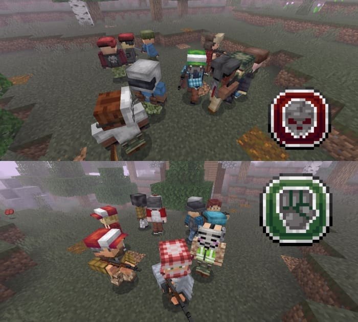 The world of DeadZone in Minecraft PE (Bedrock) is populated not only by zombies, but also by various groups of survivors: