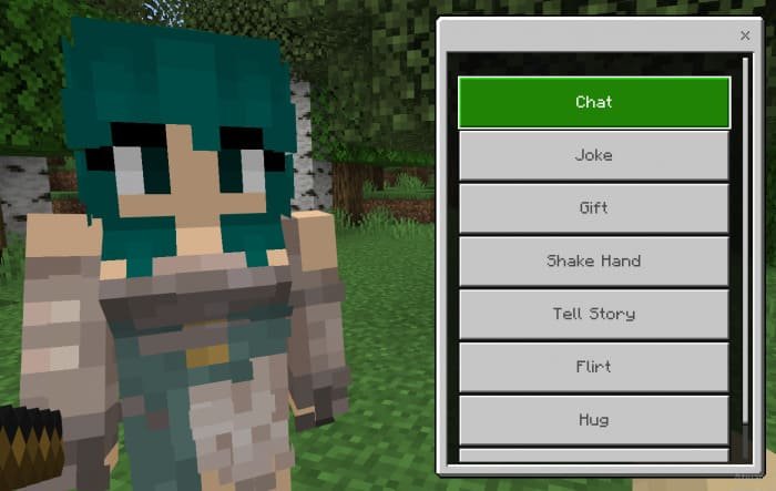 Some NPCs have unique character traits that determine how they react to certain actions. For example, romantic characters develop romantic status faster, and friendly characters find common ground with a Minecraft PE (Bedrock) player more easily.