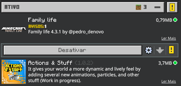 The Family Life modification supports other add-ons such as"Actions & Stuff", adding dynamic animations and new interaction options. To activate this feature, simply select the appropriate resource pack when creating a world.