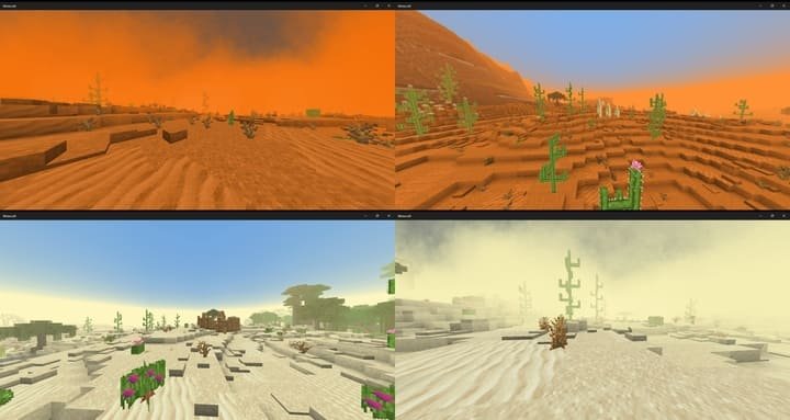 This mod completely transforms the desert and mesa biomes, adding new surfaces, unique blocks and even sandstorms. Deserts will now have massive sandstorms during thunderstorms, limiting visibility.